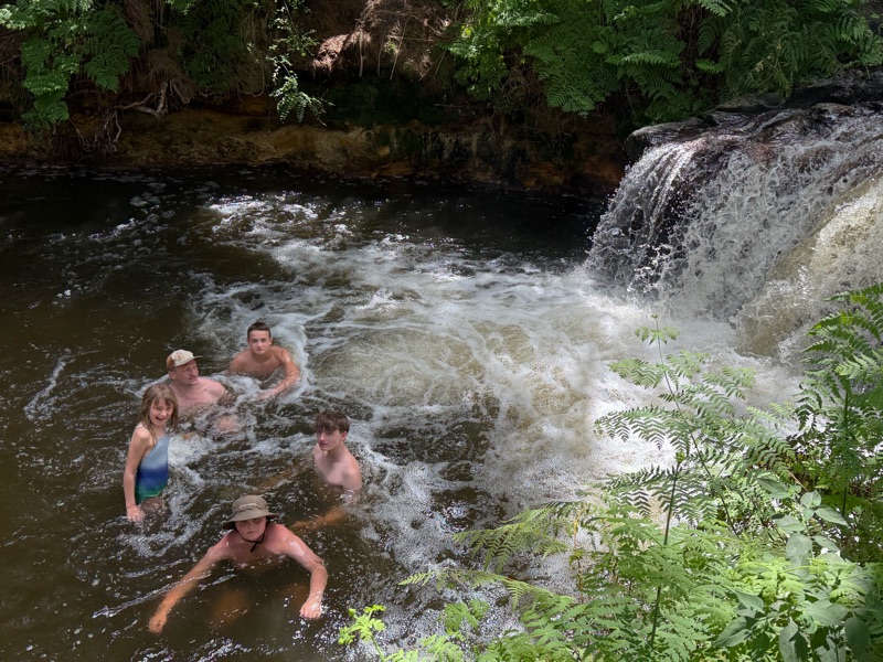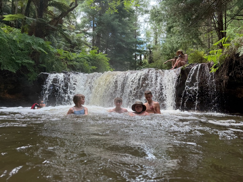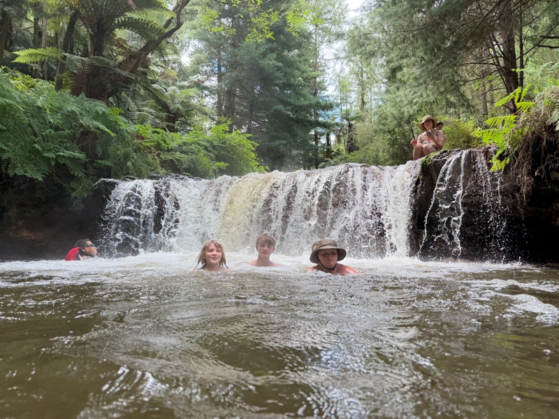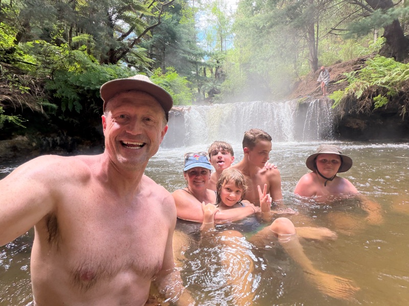 (Marc again) kerosene creek was the highlight of the day for me. 2k up a gravel road. No signs, no change rooms and best of all free! Bathing in a hot river is a whole different level. We visited this spot on our last time through NZ (pre kids) and we were happy to see that little had changed. A few other families but certainly less busy than the paved versions.
