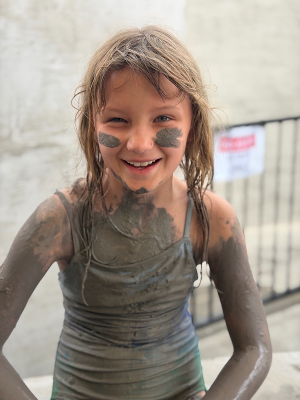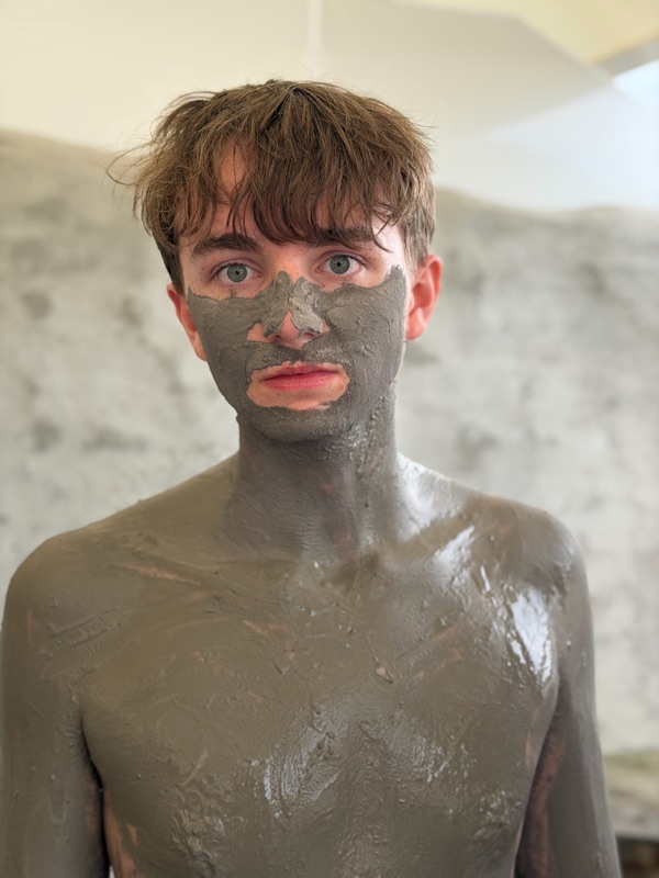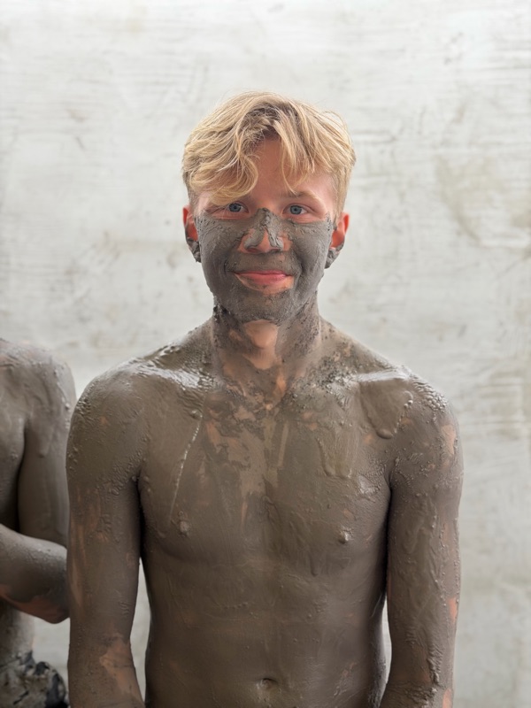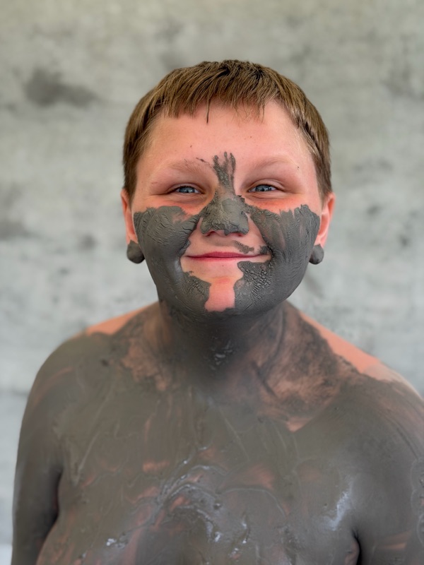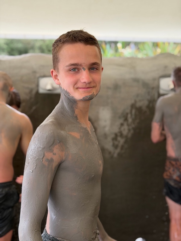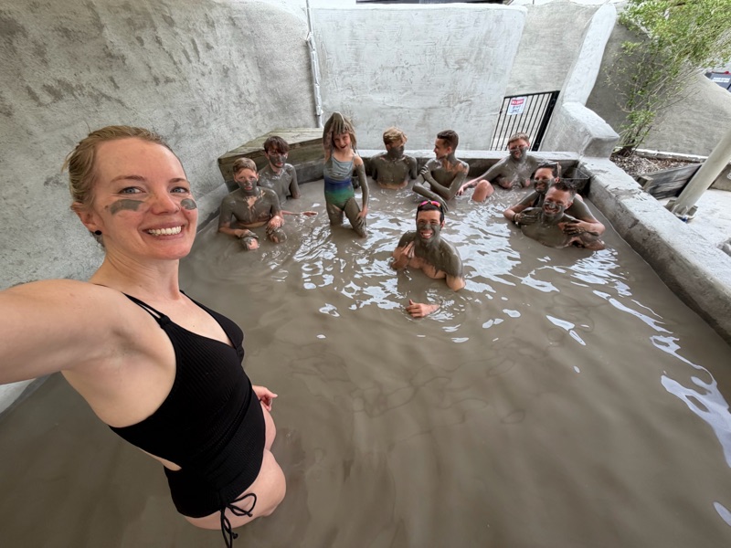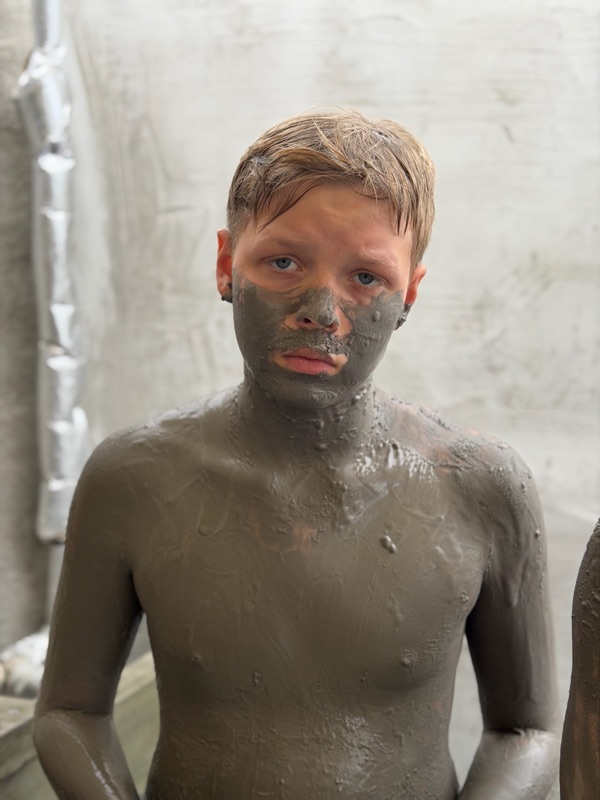 We went to the mud pits it was hot mud that you could rub all over you I think my skins smoother than before it was very fun there was also a hot spring and a cold tub it was so fun but now I smell like sulfur.
