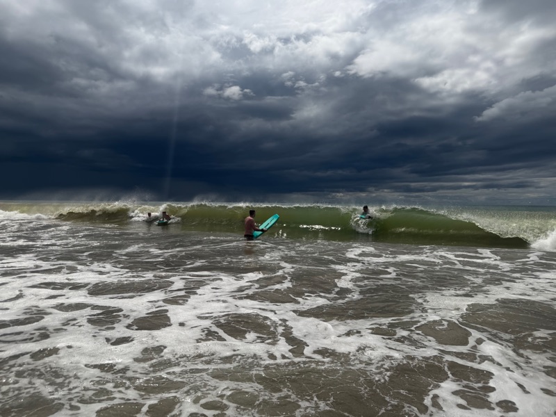 Another surf lesson (again with Dominic but this time during a storm) was the high point for the boys: