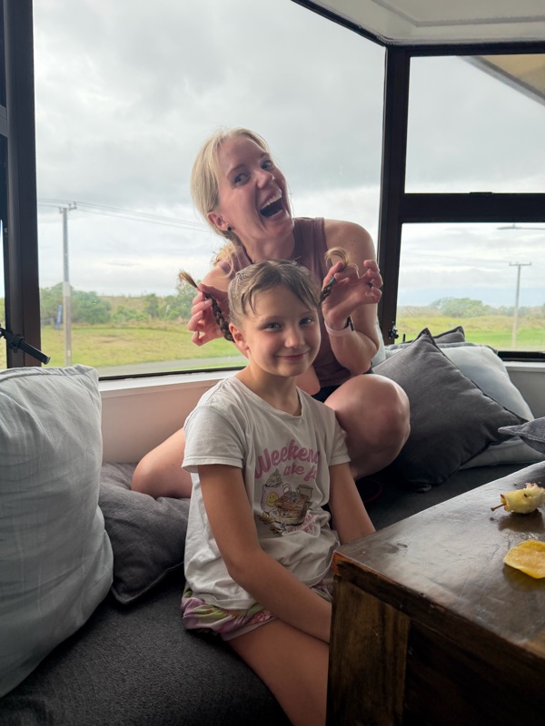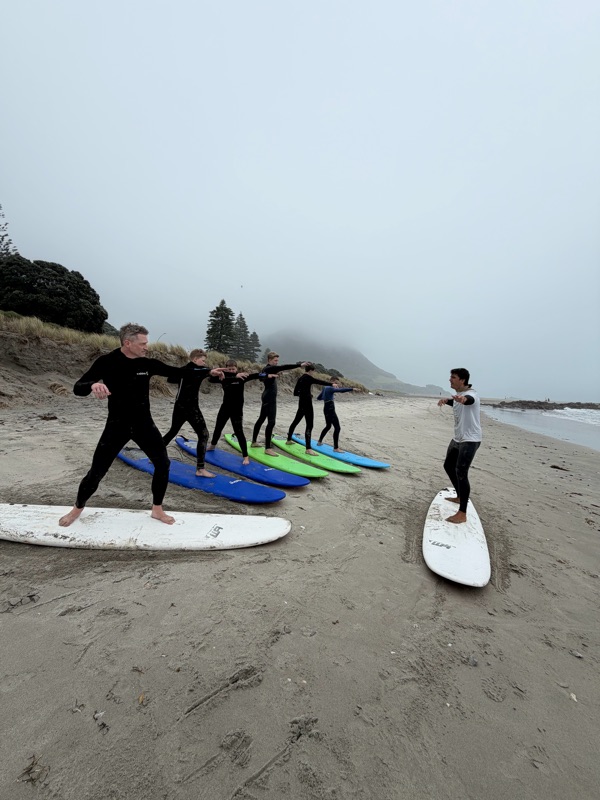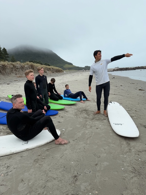 We had a surf lesson in the rain it was so fun all of us got up at least once or twice. The rain felt like hail coming down on us, it was even better with Fraser and Stefan with us.