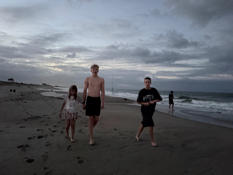 We went to the beach everyday and a couple of us went on a 6km run on the beach. One night we went for a night walk and talked to a very nice fisherman he told us about eels in the water at least 5 of em, they were very freaky.