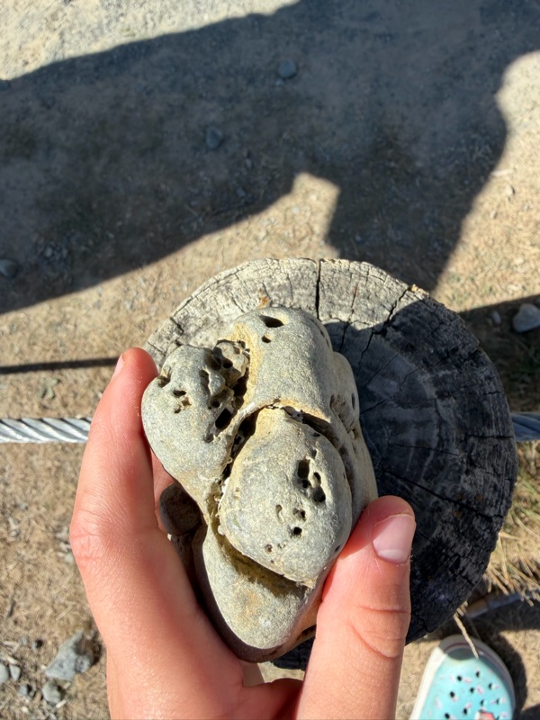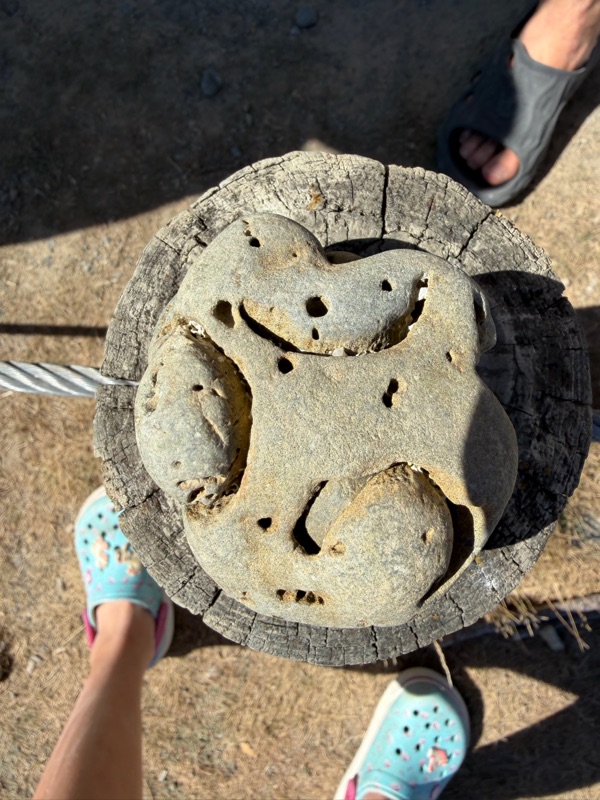 Mikaya found this crazy rock that we determined with Aunt Tammy (our geologist in the pocket) must have been made up of clumped seashells in a conglomerate. When the shells dissolved before the substrate it resulted in this bizarre semicircular pattern.