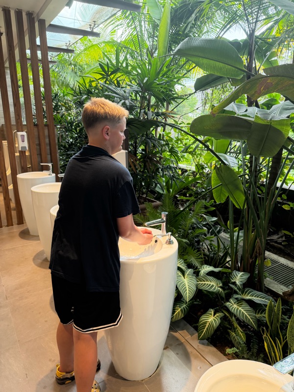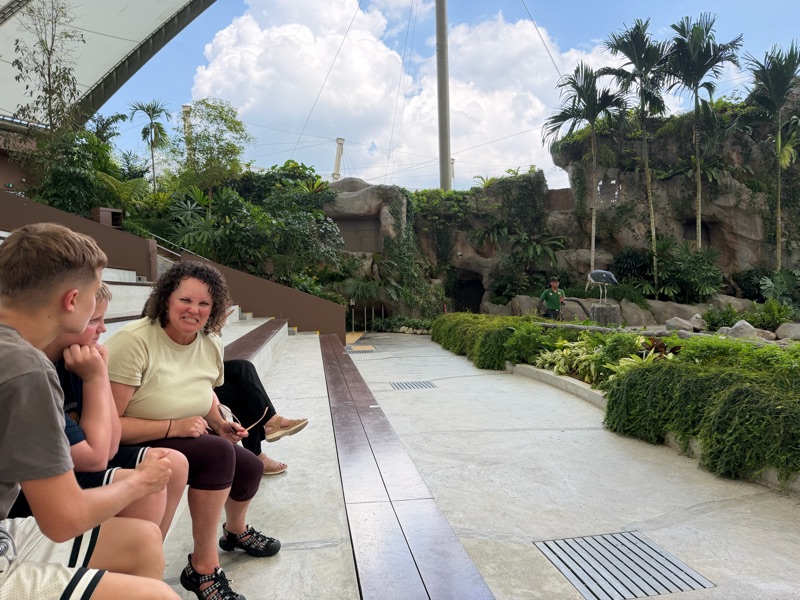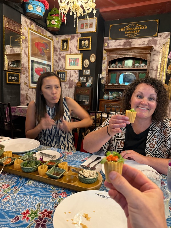 After the birds of paradise centre we left the kids at home to go to the hawker stands on their own for dinner and the adults went out to a fancy Malay and Chinese food fusion restaurant. Was so different from any food Marc and I had tried before and was absolutely delicious. We all wore batik clothes provided by Aaron and Su.
