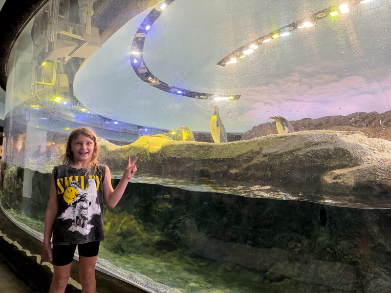 After a very hot first tour we found the penguin exhibit!! 15 degrees felt positively (ant)arctic and the penguins were total dorks. The enclosure allowed us to see their goofy antics out of the water and to see them transform into sleek torpedos under the water. We kept coming back to this exhibit, one for the fun penguins and two for the cool air. I (Kylie) spent a lot of time laying on a cool (literally and figuratively) rock watching the penguins go by.