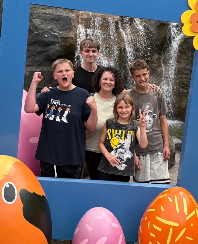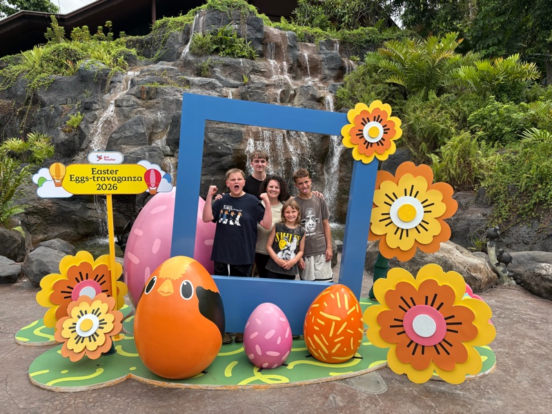 We were at the birds of paradise centre for Easter so there were a lot of decorations. Mikaya really wanted this picture frame picture of all of us. Apparently it was not taken properly so here is the original and then her zoomed in appropriate version.