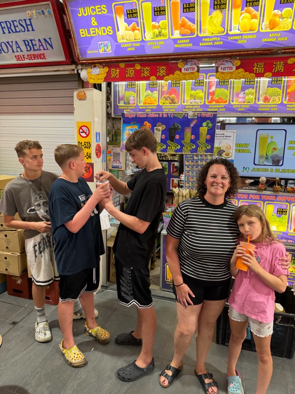 Off for one more juice and now off to Japan! Thank you so much to Aaron and Su and family for your wonderful hospitality. We all had such a good time! Everyone wants to come back soon!